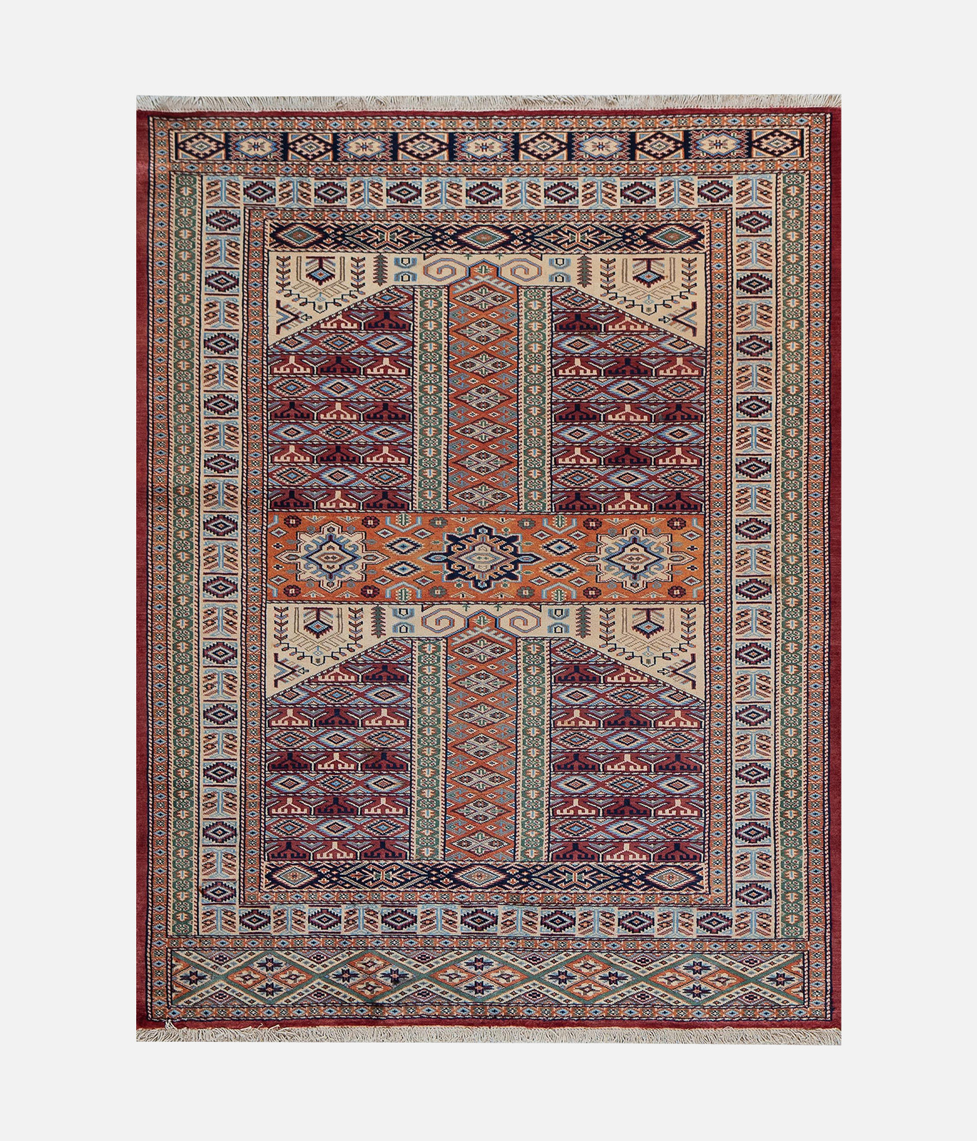 The carpets reflect the heritage of cottage-based craftsmanship passed through generations of families. The majority of carpets produced by the initiative are made from indigenous Afghan wool purchased from nomads that is then hand-spun to add to the quality. Out of over 900 breeds of sheep, only a select few qualify to meet the quality requirements of the wool used in the production of fine carpets. Only the best section of the sheep’s fleece is used for each carpet. The finest quality wool used by the initiative ensures the carpets pile strength, sheen, smoothness and durability. The initiative also produces carpets that are a combination of wool and silk. All carpets are woven using a cotton foundation to ensure strength, reduce shrinkage, and guarantee the rug will keep its shape. The carpets are designed by local university students who are supervised by Afghanistan’s most famous carpet designer. Designs are both contemporary and dated using antique motifs from carpets that are centuries old. Full scale graph paper is used which indicates to the weaver the color for each knot. Every knot is represented by a tiny square similar to pixels. Another key determinant of the fineness of a carpet is the number of knots, the higher the quality of the carpet. The initiative further works to tackle environmental degradation through the use of natural vegetable dyes and traditional washing methods; thus ensuring no environmental damage to the Kabul River, which runs into Pakistan and eventually joins the Indus.