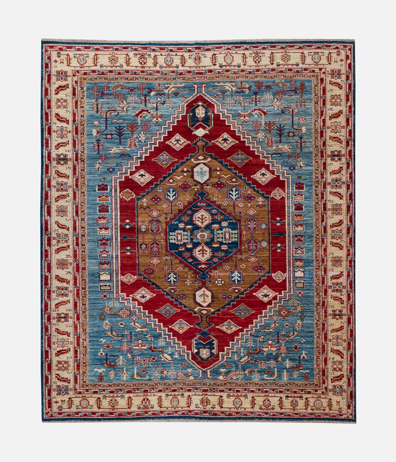 The carpets reflect the heritage of cottage-based craftsmanship passed through generations of families. The majority of carpets produced by the initiative are made from indigenous Afghan wool purchased from nomads that is then hand-spun to add to the quality. Out of over 900 breeds of sheep, only a select few qualify to meet the quality requirements of the wool used in the production of fine carpets. Only the best section of the sheep’s fleece is used for each carpet. The finest quality wool used by the initiative ensures the carpets pile strength, sheen, smoothness and durability. The initiative also produces carpets that are a combination of wool and silk. All carpets are woven using a cotton foundation to ensure strength, reduce shrinkage, and guarantee the rug will keep its shape. The carpets are designed by local university students who are supervised by Afghanistan’s most famous carpet designer. Designs are both contemporary and dated using antique motifs from carpets that are centuries old. Full scale graph paper is used which indicates to the weaver the color for each knot. Every knot is represented by a tiny square similar to pixels. Another key determinant of the fineness of a carpet is the number of knots, the higher the quality of the carpet. The initiative further works to tackle environmental degradation through the use of natural vegetable dyes and traditional washing methods; thus ensuring no environmental damage to the Kabul River, which runs into Pakistan and eventually joins the Indus.