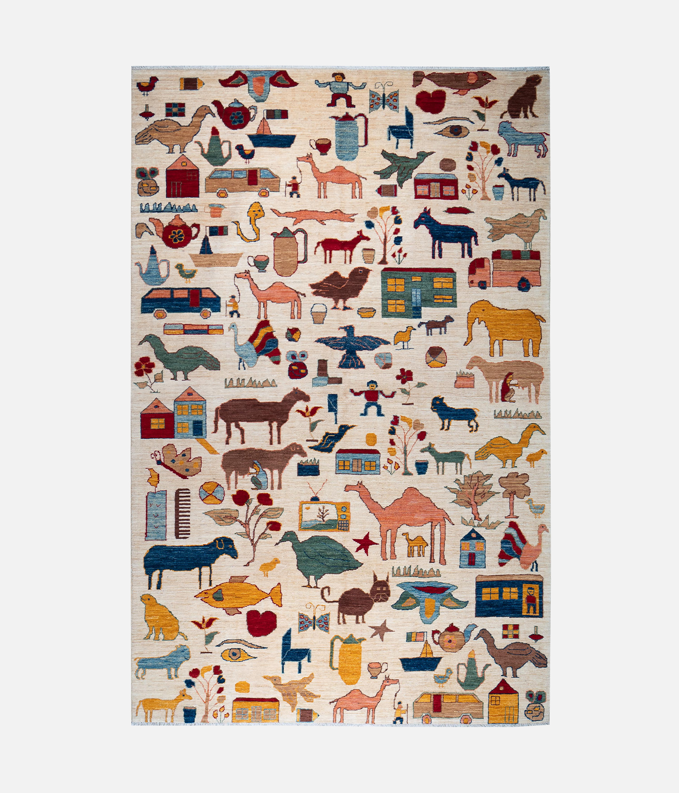 The carpets reflect the heritage of cottage-based craftsmanship passed through generations of families. The majority of carpets produced by the initiative are made from indigenous Afghan wool purchased from nomads that is then hand-spun to add to the quality. Out of over 900 breeds of sheep, only a select few qualify to meet the quality requirements of the wool used in the production of fine carpets. Only the best section of the sheep’s fleece is used for each carpet. The finest quality wool used by the initiative ensures the carpets pile strength, sheen, smoothness and durability. The initiative also produces carpets that are a combination of wool and silk. All carpets are woven using a cotton foundation to ensure strength, reduce shrinkage, and guarantee the rug will keep its shape. The carpets are designed by local university students who are supervised by Afghanistan’s most famous carpet designer. Designs are both contemporary and dated using antique motifs from carpets that are centuries old. Full scale graph paper is used which indicates to the weaver the color for each knot. Every knot is represented by a tiny square similar to pixels. Another key determinant of the fineness of a carpet is the number of knots, the higher the quality of the carpet. The initiative further works to tackle environmental degradation through the use of natural vegetable dyes and traditional washing methods; thus ensuring no environmental damage to the Kabul River, which runs into Pakistan and eventually joins the Indus.