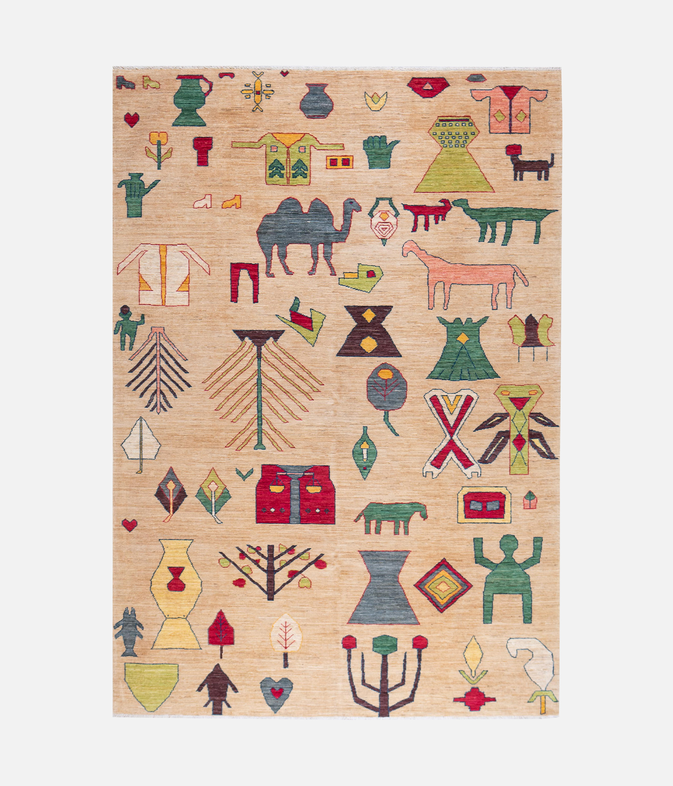 The carpets reflect the heritage of cottage-based craftsmanship passed through generations of families. The majority of carpets produced by the initiative are made from indigenous Afghan wool purchased from nomads that is then hand-spun to add to the quality. Out of over 900 breeds of sheep, only a select few qualify to meet the quality requirements of the wool used in the production of fine carpets. Only the best section of the sheep’s fleece is used for each carpet. The finest quality wool used by the initiative ensures the carpets pile strength, sheen, smoothness and durability. The initiative also produces carpets that are a combination of wool and silk. All carpets are woven using a cotton foundation to ensure strength, reduce shrinkage, and guarantee the rug will keep its shape. The carpets are designed by local university students who are supervised by Afghanistan’s most famous carpet designer. Designs are both contemporary and dated using antique motifs from carpets that are centuries old. Full scale graph paper is used which indicates to the weaver the color for each knot. Every knot is represented by a tiny square similar to pixels. Another key determinant of the fineness of a carpet is the number of knots, the higher the quality of the carpet. The initiative further works to tackle environmental degradation through the use of natural vegetable dyes and traditional washing methods; thus ensuring no environmental damage to the Kabul River, which runs into Pakistan and eventually joins the Indus.