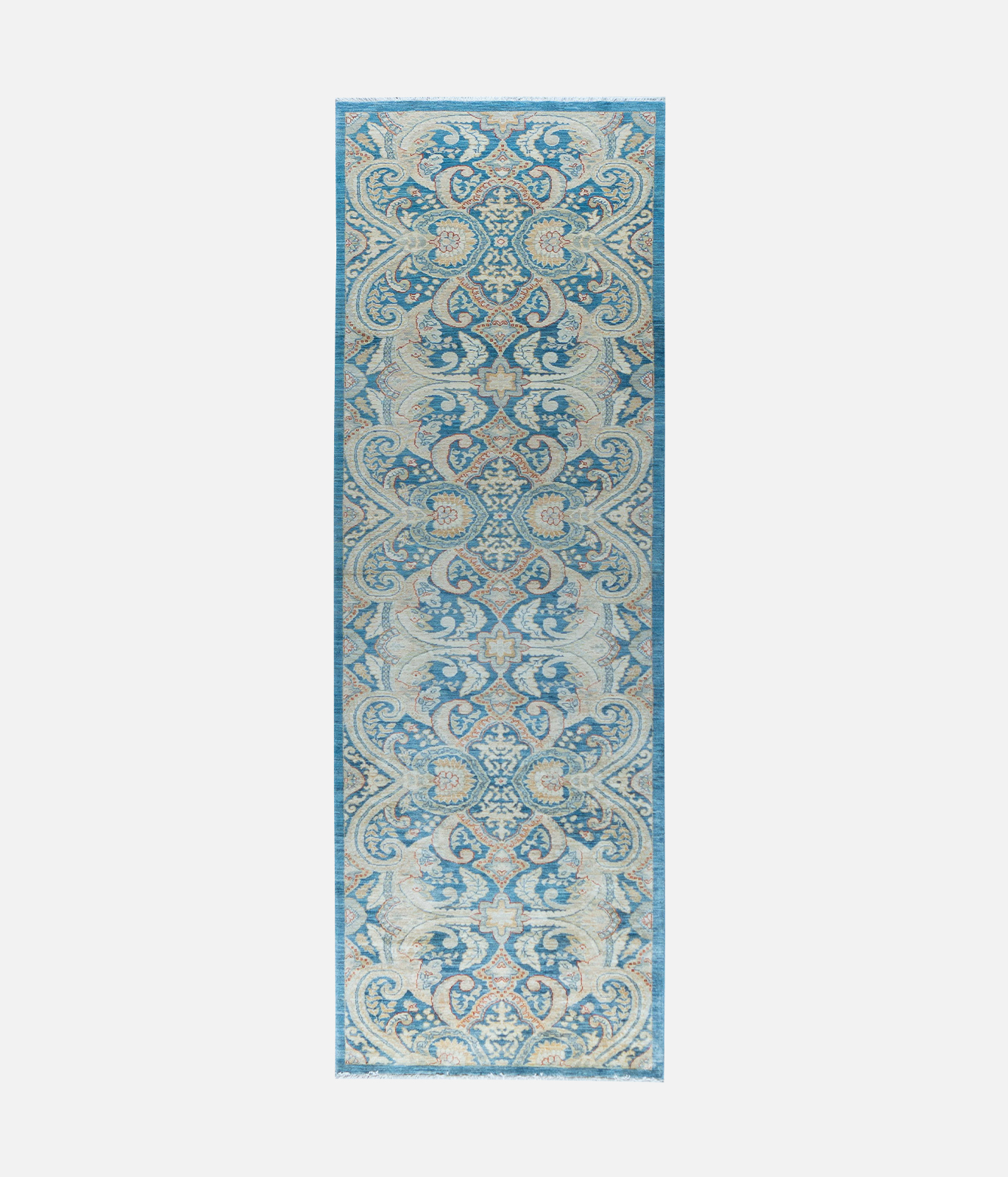 The carpets reflect the heritage of cottage-based craftsmanship passed through generations of families. The majority of carpets produced by the initiative are made from indigenous Afghan wool purchased from nomads that is then hand-spun to add to the quality. Out of over 900 breeds of sheep, only a select few qualify to meet the quality requirements of the wool used in the production of fine carpets. Only the best section of the sheep’s fleece is used for each carpet. The finest quality wool used by the initiative ensures the carpets pile strength, sheen, smoothness and durability. The initiative also produces carpets that are a combination of wool and silk. All carpets are woven using a cotton foundation to ensure strength, reduce shrinkage, and guarantee the rug will keep its shape. The carpets are designed by local university students who are supervised by Afghanistan’s most famous carpet designer. Designs are both contemporary and dated using antique motifs from carpets that are centuries old. Full scale graph paper is used which indicates to the weaver the color for each knot. Every knot is represented by a tiny square similar to pixels. Another key determinant of the fineness of a carpet is the number of knots, the higher the quality of the carpet. The initiative further works to tackle environmental degradation through the use of natural vegetable dyes and traditional washing methods; thus ensuring no environmental damage to the Kabul River, which runs into Pakistan and eventually joins the Indus.